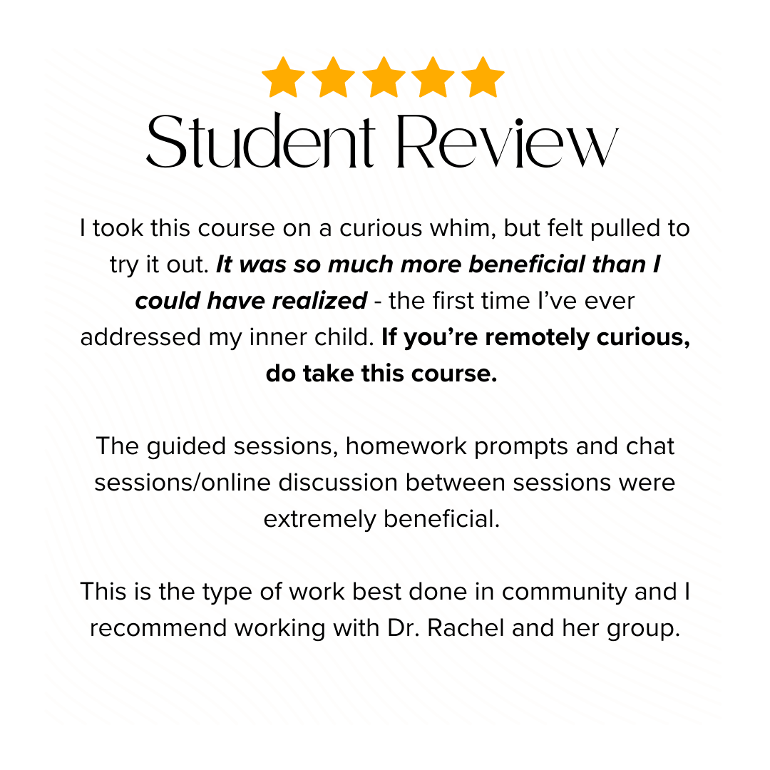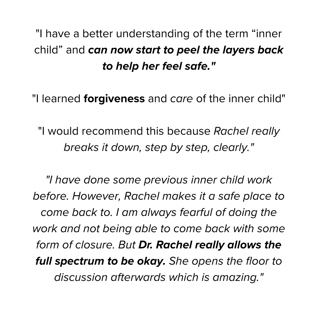 I’m Dr. Rachel, and I’m passionate about helping people heal their inner child. I know firsthand the transformative power of this work, and I want to share it with you.
