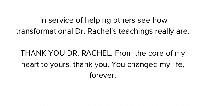 A: Reach out to my assistant at support@heydrrachel.com and we can discuss your specific needs and concerns.